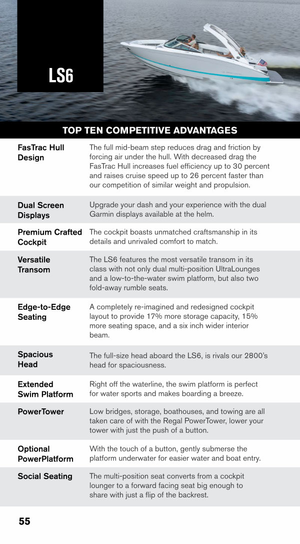 The LS6 features the most versatile transom in its class with not only dual multi-position UltraLounges and a low-to-the-water swim platform, but also two fold-away rumble seats.