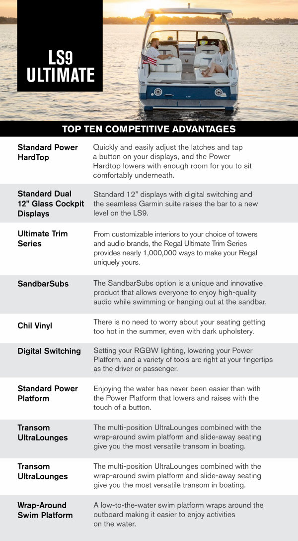 From customizable interiors to your choice of towers and audio brands, the Regal Ultimate Trim Series provides nearly 1,000,000 ways to make your Regal uniquely yours.