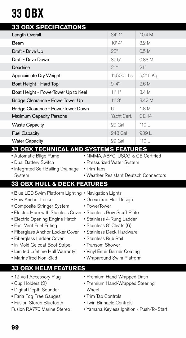 33 OBX SPECIFICATIONS