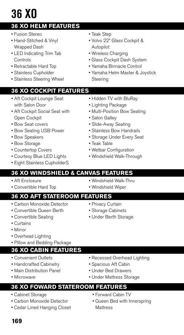 36 XO CABIN FEATURES