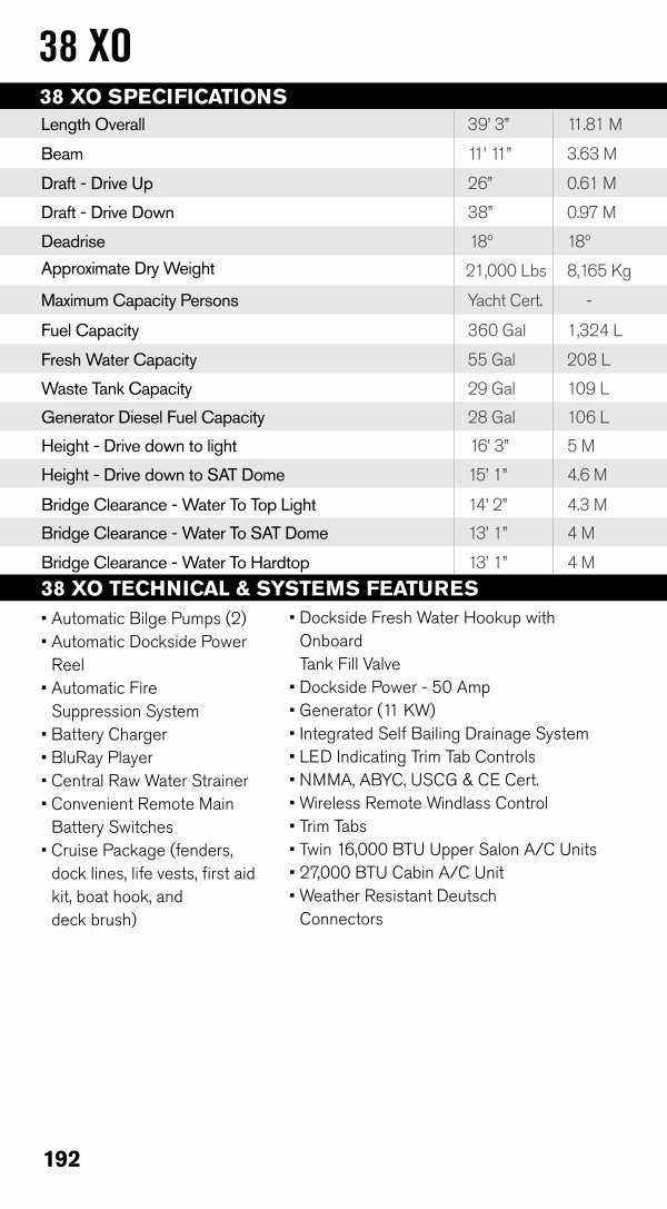 38 XO SPECIFICATIONS