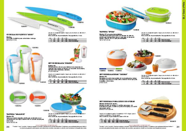 Plástico PP. Tartera con tenedor plegable y tarrito para condimentos en el compartimento de la tapa. Volumen 400 ml. La base es apta para microondas. 12,4 x 16 x 6,7 cm