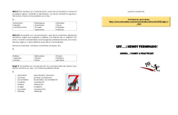 REGLA 8: Se escribe con z la terminación –eza de los sustantivos abstractos