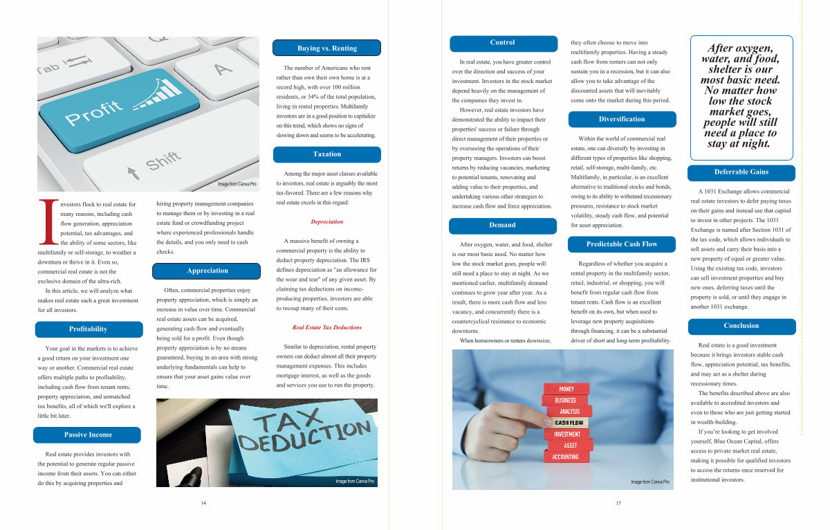 If you’ re looking to get involved yourself, Blue Ocean Capital, offers access to private market real estate, making it possible for qualified investors to access the returns once reserved for institutional investors.