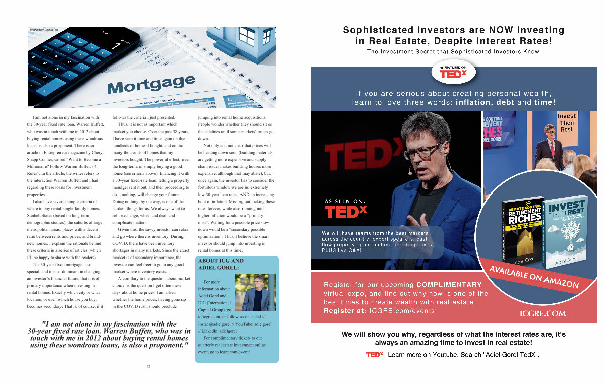 I am not alone in my fascination with the 30year fixed rate loan. Warren Buffett, who was in touch with me in 2012 about buying rental homes using these wondrous loans, is also a proponent. There is an article in Entrepreneur magazine by Cheryl Snapp Conner, called“ Want to Become a Millionaire? Follow Warren Buffett ' s 4 Rules”. In the article, the writer refers to the interaction Warren Buffett and I had regarding these loans for investment properties.