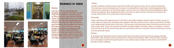 mathematics. After these four lessons we had classes in Estonian national dance. When I returned home, I had time