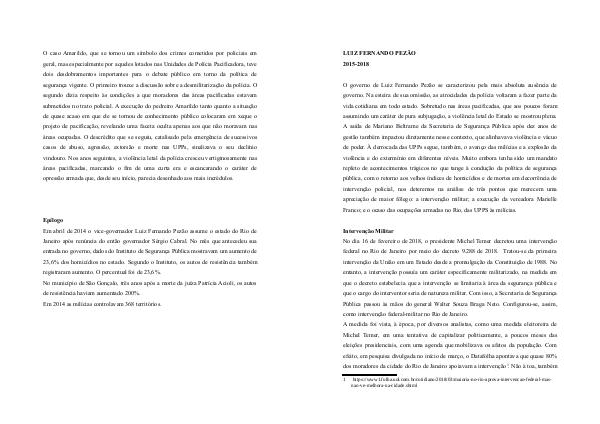 Franco; e o ocaso das ocupações armadas no Rio, das UPPS às milícias.