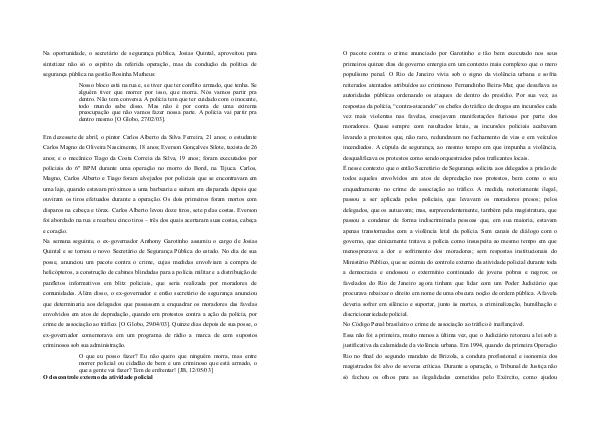 vez mais violentas nas favelas, ensejavam manifestações furiosas por parte dos