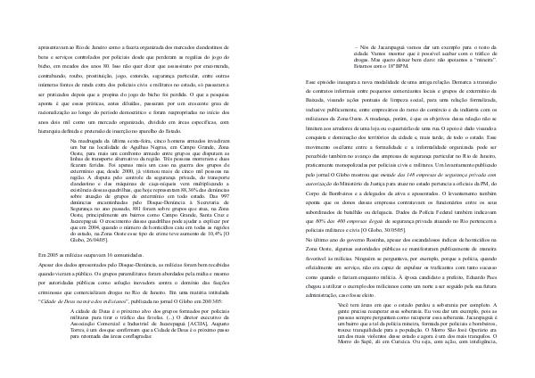 favorável às milícias. Ninguém se perguntava, por exemplo, porque a polícia, quando