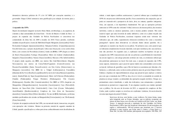 projeto de expansão das Unidades de Polícia Pacificadora se concentrou nas
