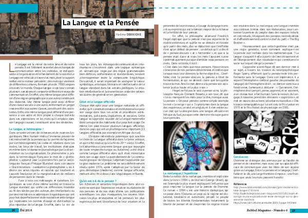 Qu’ en est-t-il de la pensée? Les richesses et variantes linguistiques dans une société ne sont que l’ expression intuitive ou élaborée de nos pensées et de nos états d’ âme. Les publications scientifiques les plus marquantes, les œuvres littéraires les plus envoutantes et les penseurs les plus ingénieux doivent l’ excellence de leur création et la