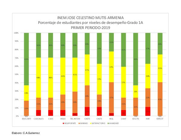Porcentaje de estudiantes por niveles de desempeño-Grado 1A