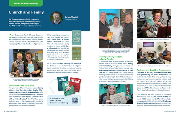 Dr. Mulvihill’ s book, Family Ministry, is the foundational text for our nine-month online Family Ministry Academy. This year, we completed our third cohort and launched a fourth, training ministry leaders who have 50,000 people in their churches. As these pastors and family ministry leaders grasp the power of equipping parents and grandparents to disciple their children and grandchildren, our ability to give thousands of children a biblical worldview increases significantly.