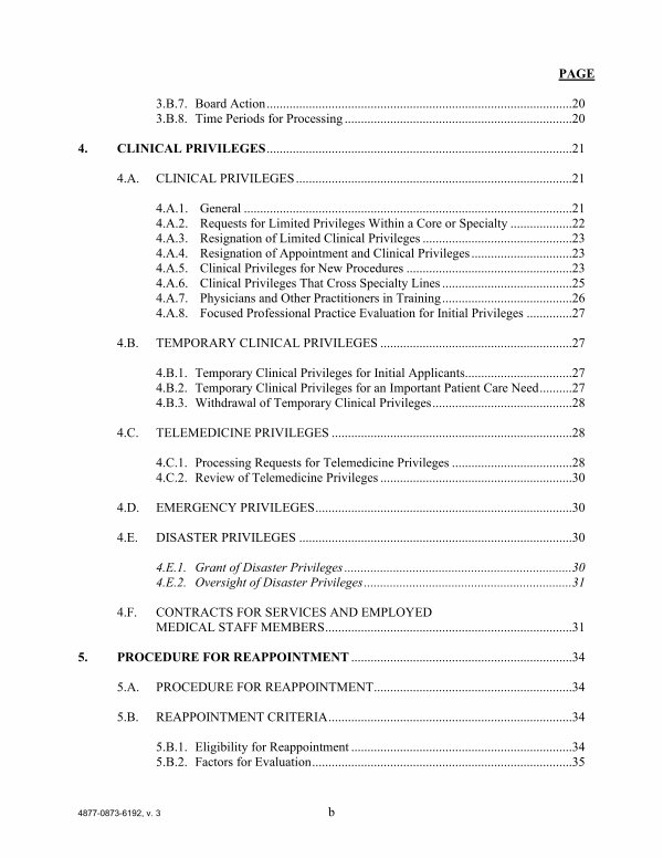 4. CLINICAL PRIVILEGES.............................................................................................. 21 4. A. CLINICAL PRIVILEGES..................................................................................... 21