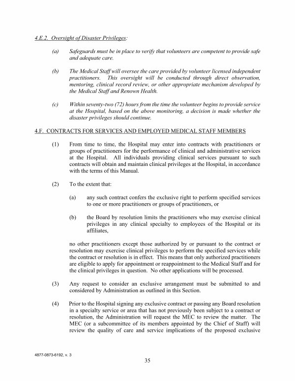 4. F. CONTRACTS FOR SERVICES AND EMPLOYED MEDICAL STAFF MEMBERS
