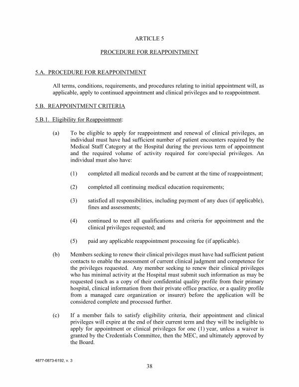 ARTICLE 5 PROCEDURE FOR REAPPOINTMENT
