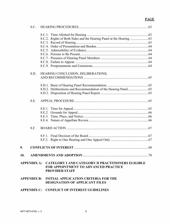 8. D. 1. Basis of Hearing Panel Recommendation.................................................. 65 8. D. 2. Deliberations and Recommendation of the Hearing Panel........................ 65 8. D. 3. Disposition of Hearing Panel Report......................................................... 65