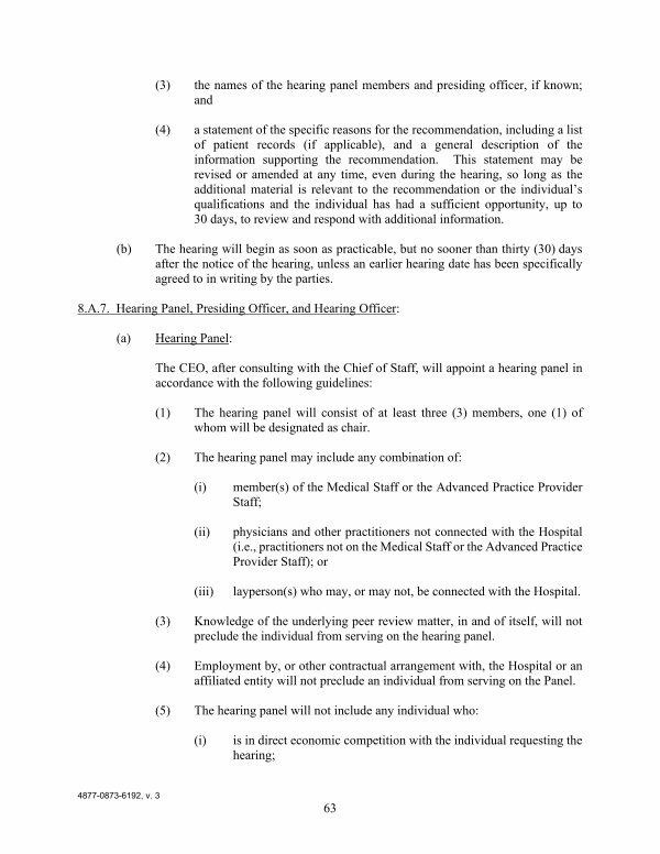 The CEO, after consulting with the Chief of Staff, will appoint a hearing panel in accordance with the following guidelines: