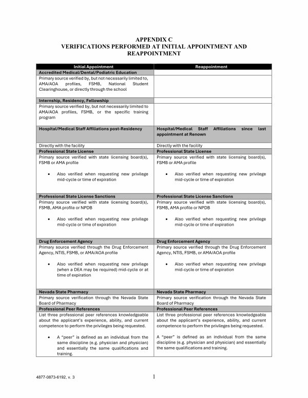 APPENDIX C VERIFICATIONS PERFORMED AT INITIAL APPOINTMENT AND REAPPOINTMENT