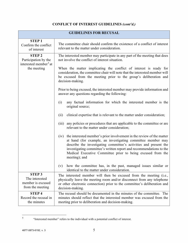 “ Interested member” refers to the individual with a potential conflict of interest.