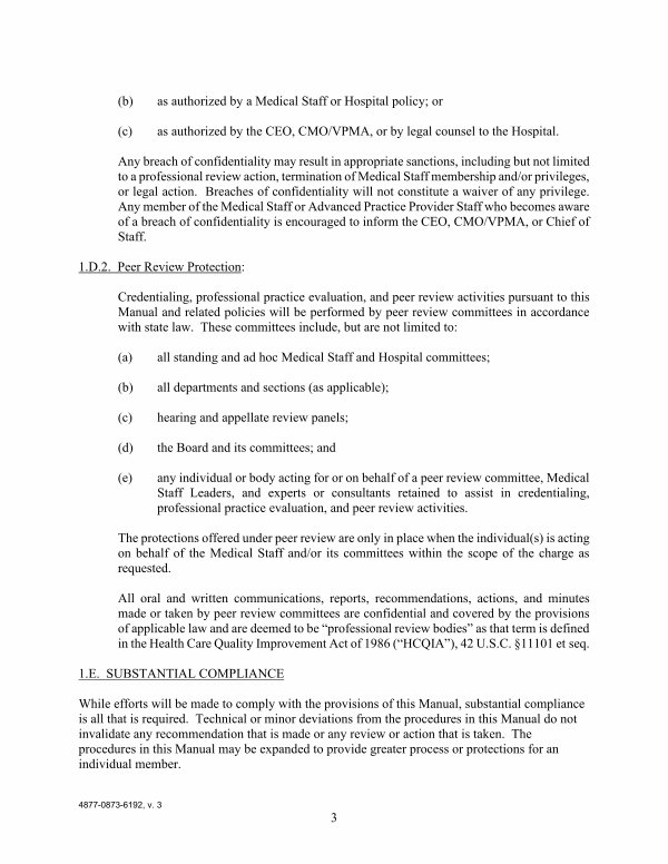 While efforts will be made to comply with the provisions of this Manual, substantial compliance is all that is required. Technical or minor deviations from the procedures in this Manual do not invalidate any recommendation that is made or any review or action that is taken. The procedures in this Manual may be expanded to provide greater process or protections for an individual member.
