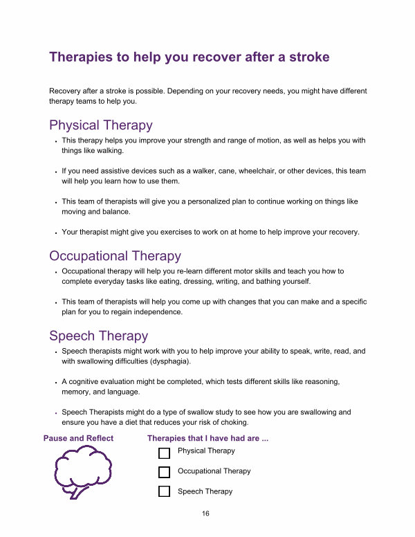 Recovery after a stroke is possible. Depending on your recovery needs, you might have different therapy teams to help you.