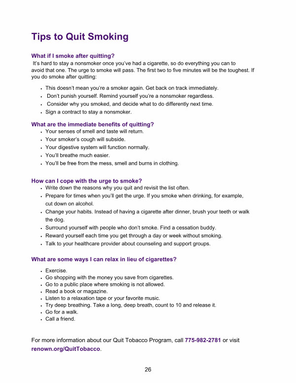 For more information about our Quit Tobacco Program, call 775-982-2781 or visit renown. org / QuitTobacco.