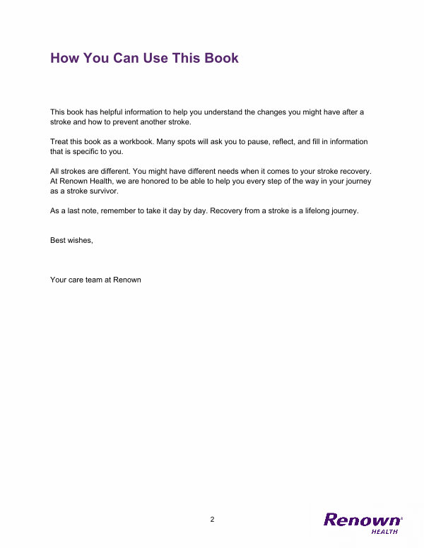 This book has helpful information to help you understand the changes you might have after a stroke and how to prevent another stroke.