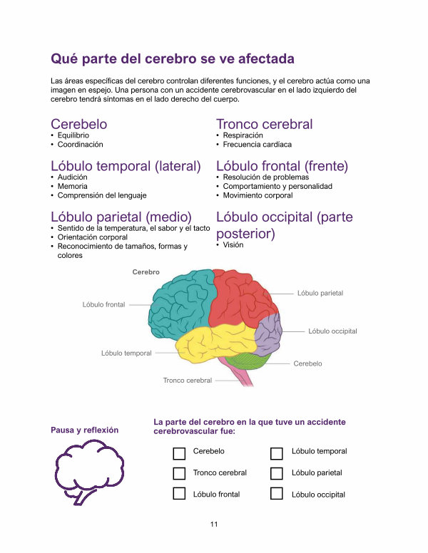 La parte del cerebro en la que tuve un accidente cerebrovascular fue: