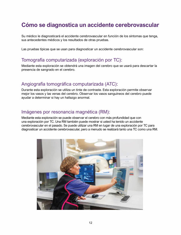 Las pruebas típicas que se usan para diagnosticar un accidente cerebrovascular son: