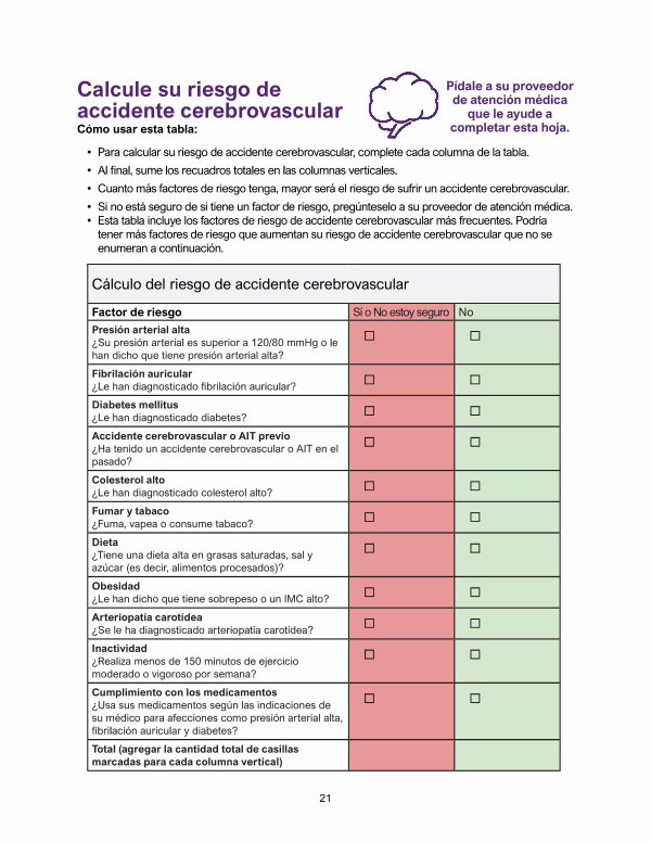 • Para calcular su riesgo de accidente cerebrovascular, complete cada columna de la tabla.
