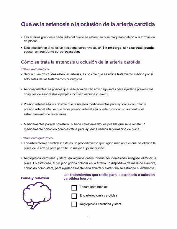 Los tratamientos que recibí para la estenosis u oclusión carotídea fueron: