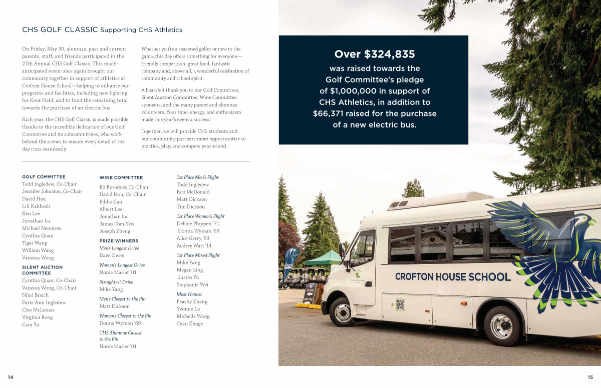 Over $ 324,835 was raised towards the Golf Committee’ s pledge of $ 1,000,000 in support of CHS Athletics, in addition to $ 66,371 raised for the purchase of a new electric bus.