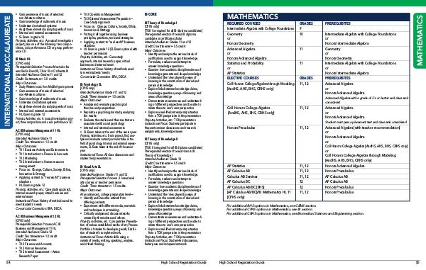 For additional BHS options in Mathematics, see CEMS section.