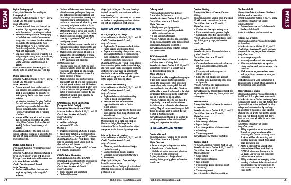 Digital Photography II Prerequisite / Selection Process: Digital Photography I Intended Audience: Grades 9, 10, 11, and 12 Credit: One trimester = 0.5 credit Major Outcomes:
