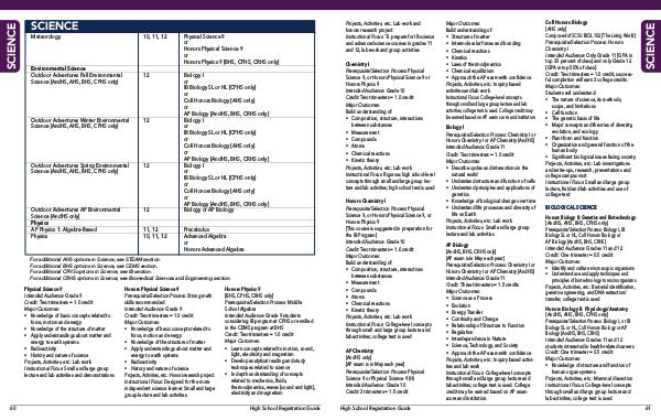 For additional CRHS options in Science, see Biomedical Sciences and Engineering section.