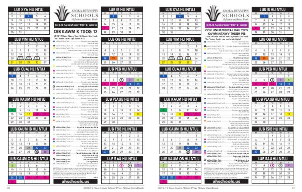 2018-19 Daim Ntawv Teev Sij Hawm Cov Hnub Tim Tseem Ceeb- qib kawm K-12