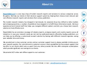 ReportsWeb. com is a one stop shop of market research reports and solutions to various companies across the globe. We help our clients in their decision support system by helping them choose most relevant and cost effective research reports and solutions from various publishers.