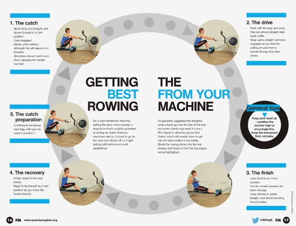 On a well-maintained machine, setting the lever at four creates a drag factor that’ s roughly equivalent to rowing on water. However, machines vary so it’ s best to go by feel and start clients off on a light setting until technique is well established.