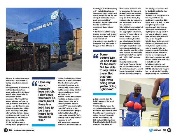 I love my work. I honestly love my job. I don’ t love the hours so much, but if there is a job I had to do these hours for it would be this.” do what you have to do to exist. It’ s not the same but that’ s what it felt like. This is what you’ re stuck with. School was never really my thing, and outside of that there was nothing. So when this opportunity came I took it with both hands.” Towards the end of his sentence he started getting out on day release. It was on the first of these days that he came to know of FFP, when surprising his mum didn’ t quite go to plan:“ I just assumed she was going to be home. I turned up at the house and she wasn’ t in. That’ s probably the best thing that ever happened to me.” With some cash in his pocket and time to kill he headed to the