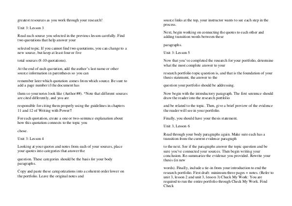 research portfolio. First draft: minimum three pages + notes. (Refer to