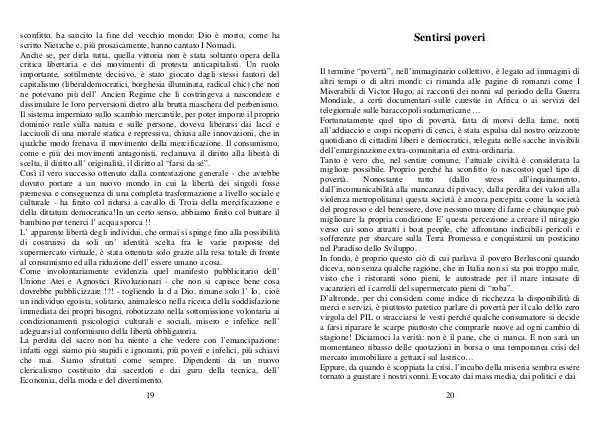al consumismo ed alla riduzione dell’ essere umano a cosa.