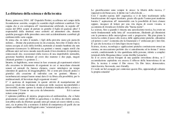 irreversibili, mentre aprono la strada al dominio totalitario della scienza e