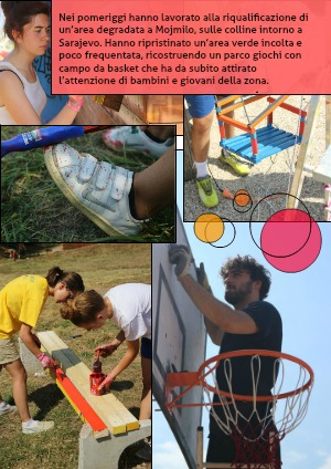 Nei pomeriggi hanno lavorato alla riqualificazione di un’area degradata a Mojmilo, sulle colline intorno a Sarajevo. Hanno ripristinato un’area verde incolta e poco frequentata, ricostruendo un parco giochi con campo da basket che ha da subito attirato l’attenzione di bambini e giovani della zona.
