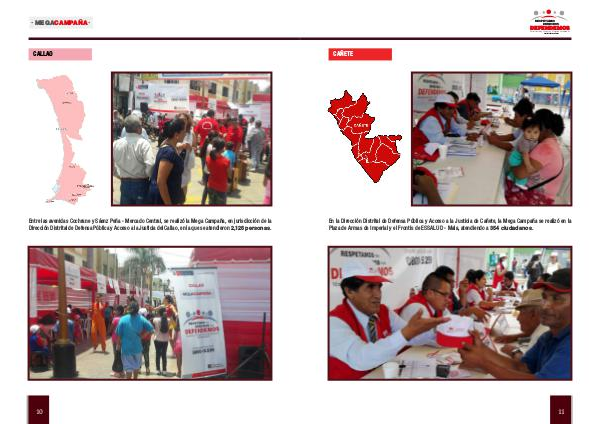 En la Dirección Distrital de Defensa Pública y Acceso a la Justicia de Cañete, la Mega Campaña se realizó en la Plaza de Armas de Imperial y el Frontis de ESSALUD- Mala, atendiendo a 354 ciudadanos.