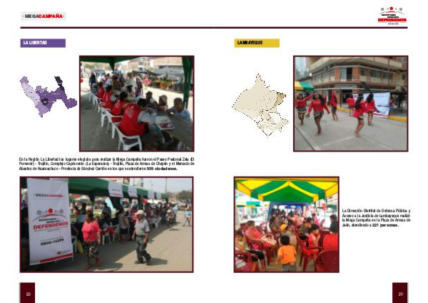 En la Región La Libertad los lugares elegidos para realizar la Mega Campaña fueron el Paseo Peatonal Zela( El Porvenir)- Trujillo, Complejo Capricornio( La Esperanza)- Trujillo, Plaza de Armas de Chepén y el Mercado de Abastos de Huamachuco- Provincia de Sánchez Carrión en los que se atendieron 939 ciudadanos.