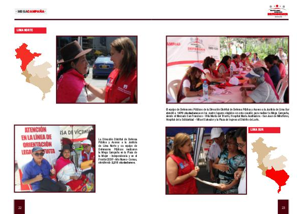 La Dirección Distrital de Defensa Pública y Acceso a la Justicia de Lima Norte y su equipo de Defensores Públicos realizaron la Mega Campaña en la Plaza de la Mujer- Independencia y en el Frontis CEDIF- Año Nuevo- Comas, atendiendo 2,215 ciudadanos.