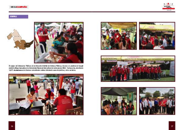 El equipo de Defensores Públicos de la Dirección Distrital de Defensa Pública y Acceso a la Justicia de Ucayali realizó la Mega Campaña en la Universidad Nacional Intercultural de la Amazonia UNIA- Yarinacocha, atendiendo 1,217 ciudadanos de diversas comunidades nativas brindando asesoría jurídica y otros servicios.