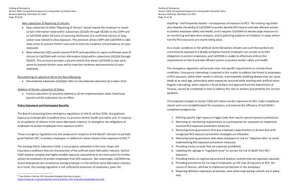 Finding of Emergency Section 5204 , Occupational Exposures to Respirable Crystalline Silica Business Meeting : December 14 , 2023 Page 31 of 36
