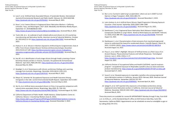 Finding of Emergency Section 5204 , Occupational Exposures to Respirable Crystalline Silica Business Meeting : December 14 , 2023 Page 35 of 36